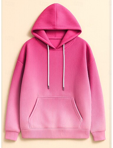 Жен. Толстовка с капюшоном и пуловером Графика Радужный Абстракция На каждый день Богемный Длинный рукав Капюшон Обычные топы Для улицы На каждый день С принтом Передний карман Каштановый Розовый
