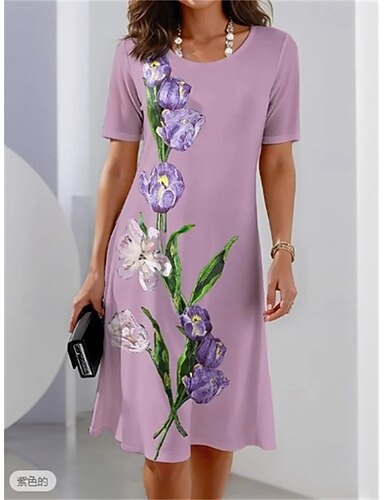 Элегантное вечернее миди-платье для женщин с круглым вырезом коротким рукавом свободного кроя летнее платье повседневное обычная посадка цветочный графический рисунок синий фиолетовый зеленый лето