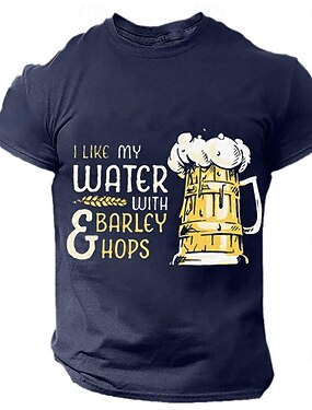 Футболка для мужчин "Мне нравится моя вода с ячменем и хмелем" Графическая футболка для любителей пива с коротким рукавом