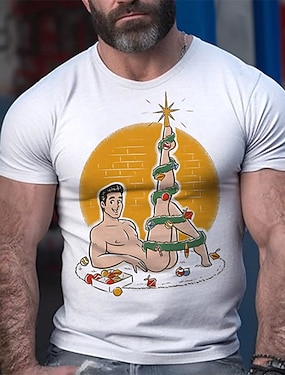 Мужская забавная графическая футболка 'Человек-новогодняя елка' с коротким рукавом новинка к празднику