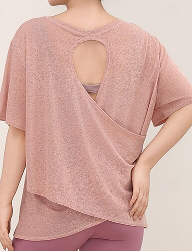 Жен. Спортивные рубашки Дружественная кожа Мягкость Дышащий Вырезка С короткими рукавами Виды спорта Сплошной цвет Верхняя часть Для Тренажерный зал Пилатес Зумба Свободное облегание Спортивная одежда