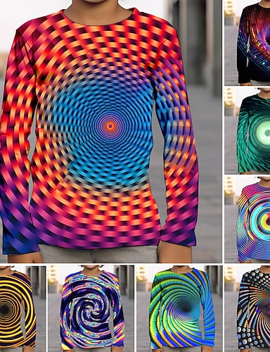 Футболка с 3D-графикой и оптической иллюзией для мальчиков, длинный рукав, 3D-принт, лето, весна, осень, спортивная, модная, уличная одежда из полиэстера, для детей 4-12 лет, для активного отдыха, повседневная, стандартного кроя
