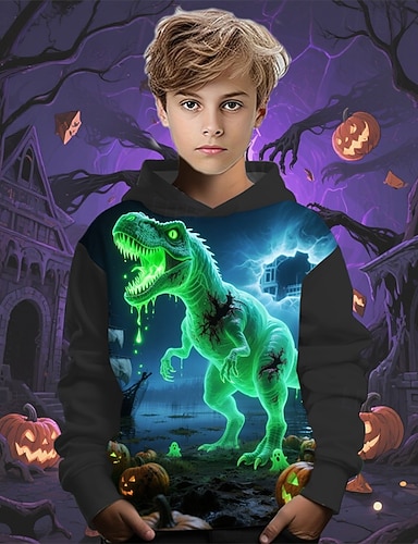 Хэллоуин Мальчики 3D Тыква Динозавр Толстовка Длинный рукав Весна Осень Мода Уличный стиль Дети 4-12 лет Капюшон на открытом воздухе Повседневные Стандартный