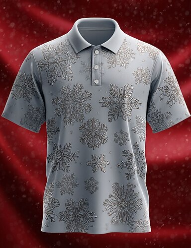 Новогодняя тематика Муж. В снежинку Поло С короткими рукавами Футболки поло Лацкан На каждый день Праздники Фестивальный наряд 3D печать Пуговицы Лето Красный Синий Серый