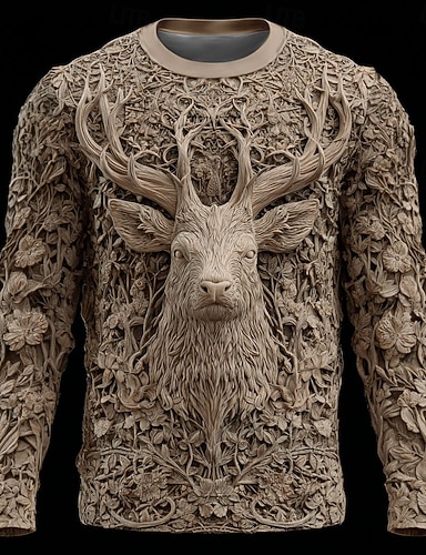 Муж. камуфляж Олень Футболка Длинный рукав Футболка 3D печать Вырез под горло Рубашка Мода На открытом воздухе Для улицы Для спорта и активного отдыха Для охоты