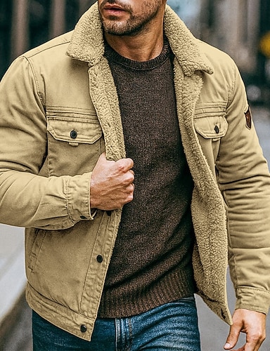 Муж. Флисовая жилетка Куртка-карго Куртка для работы по дому Официальные Дом Ветровка Прочный Карман Воротник из флиса Осень Зима Сплошной цвет Активный Винтаж Воротничок Обычная