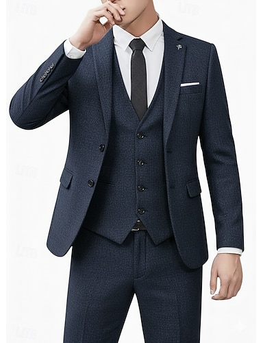 Мужской Бизнес Деловые костюмы Лацкан с тупым углом Черный Бордовый Повседневные Формальная Однотонный Узкий крой Набор из 3 предметов