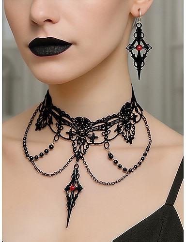 Женский комплект из готического кружевного колье и серег на Хэллоуин – черные бисерные украшения в стиле вампира для костюмированной вечеринки и косплея