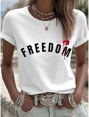 Жен. Футболка Графика Буквы Стиль Классика На каждый день С короткими рукавами Вырез под горло Обычные топы Повседневные С принтом Черный Белый Розовый Синий Лиловый Лето Весна