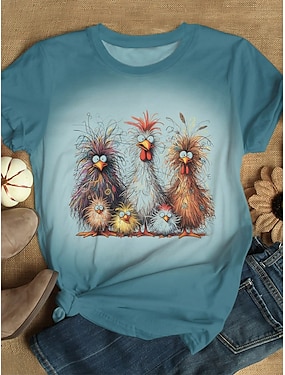 Жен. Футболка Омбре Графика Петух Винтаж Стиль Классика С короткими рукавами Вырез под горло Обычные топы Повседневные выходные С принтом Розовый Синий Зеленый Хаки Лето Весна