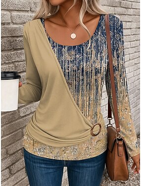 Футболка для женщин с длинным рукавом рубчик графика квадратный вырез длинный рукав повседневный омбре абстракция винтажный стильный классика обычные топы повседневный принт синий фиолетовый золотой