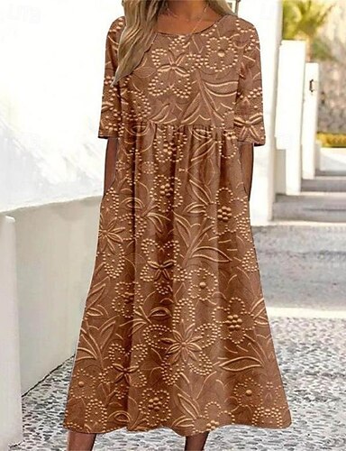 Жен. Платье средней длины Повседневное платье Летнее платье Мода Современное Повседневные Пляж выходные Стандартный Цветы С короткими рукавами Вырез под горло Белый Розовый Лиловый Коричневый