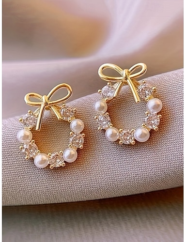 Женские серьги-бантики с жемчугом – элегантные венки-гвоздики с кристаллами, модные украшения для женщин и рождественский подарок