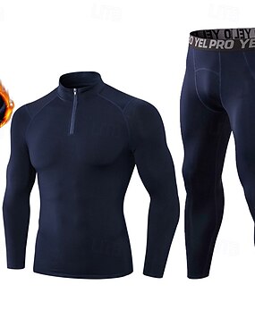 Муж. Спортивные костюмы Базовый слой верх и низ Спортивный комплект из 2 предметов с флисовой подкладкой Однотонный Наборы одежды Наступила зима Черный Белый Тренажерный зал Баскетбол Спортивная
