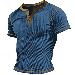Муж. Вафельная рубашка Henley Футболка Сплошной цвет Хенли на открытом воздухе Повседневные С короткими рукавами кнопка Одежда Полиэстер Мода Оригинальный рисунок Удобный