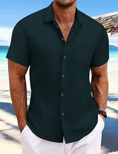 Муж. Рубашка Летняя рубашка Повседневная рубашка Пляжная рубашка Кнопка рубашка Рубашка из сирсакера Черный Красный Темно-синий Темно синий Темно-зеленый Длинный рукав