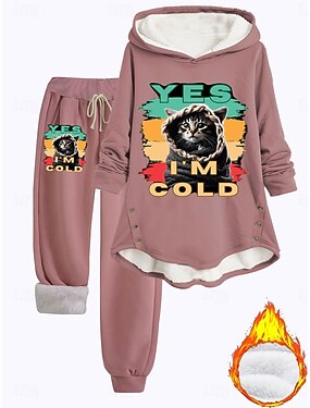 Жен. Теплый Повседневные Комплекты из двух предметов Спортивный костюм Комплекты брюк Длинный рукав Капюшон Графика Животное Буквы Кулиска С принтом Повседневные Черный Темно-розовый Красный Осень
