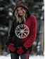 Женские толстовки с капюшоном в стиле викингов с графическим принтом, готические, повседневные, с длинным рукавом, с капюшоном, обычные, повседневные, с завязками, с принтом, винные, весна-осень