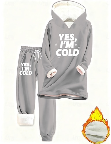 Жен. Повседневные Стиль Комплекты из двух предметов Спортивный костюм Комплекты брюк Длинный рукав Капюшон Графика Буквы Кулиска С принтом Повседневные Синий Черный Розовый Осень