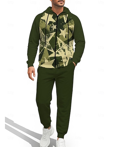 Муж. Толстовка Спортивный костюм Толстовка на молнии Кулиска Карманы Камуфляж Брюки Толстовка Худи и брюки Осень Военно-зеленный Камуфляж Браун Тренировка в тренажерном зале Повседневный Баскетбол