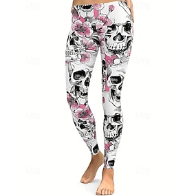 Жен. Брюки Леггинсы Уютные леггинсы Уличный стиль На каждый день Полная длина ЗавышеннаяPantsHalloween Цветочный принт Черепа Эластичная талия С принтом Воздухопроницаемость Удобный Эластичная