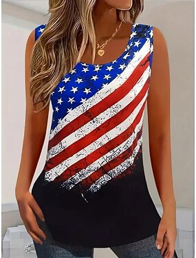 Жен. Безрукавка Флаг Западный Этнический Без рукавов Вырез под горло Обычные топы Повседневные Праздники С принтом Красный Темно синий Лето