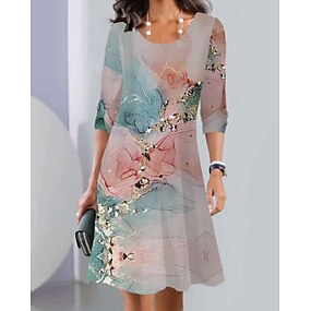 Жен. Платье средней длины Повседневное платье Платье с коротким и широким подолом Летнее платье Мода Современное Повседневные выходные Осеннее платье Стандартный Цветочный принт Рукав до локтя