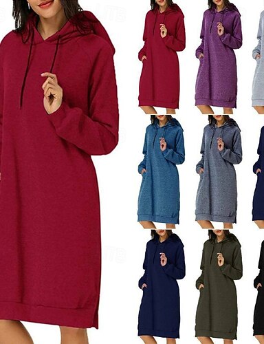 Жен. Мини-платье Платье с капюшоном Мода Современное на открытом воздухе Отпуск Праздники Стандартный Полотняное плетение Длинный рукав Капюшон Черный Красный Темно синий Синий Осень Зима