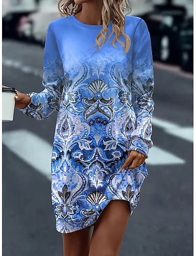 Женское платье-свитшот мини платье изменение платья повседневного Хэллоуина праздники выходной свободная посадка графика градиент длинный рукав Crew Neck синий весна осень зима
