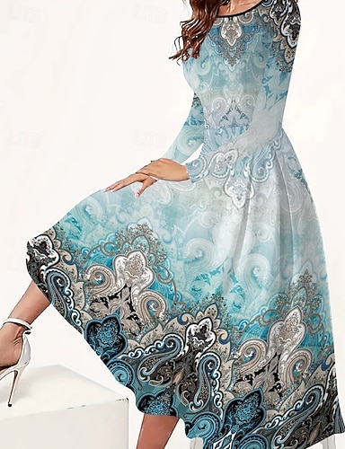 Жен. длинное платье платье макси Платье в стиле бохо Элегантный стиль Винтаж Мода на открытом воздухе Повседневные На выход Стандартный Графика Цветы Длинный рукав Вырез под горло
