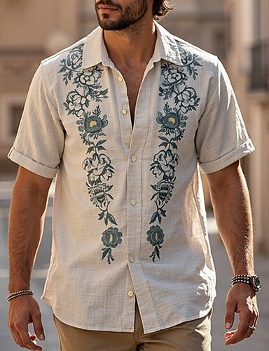 Муж. Рубашка Летняя рубашка Повседневная рубашка Пляжная рубашка Кнопка рубашка Светлый хаки Хаки Бежевый С короткими рукавами Цветочный принт Лацкан Отпуск Гавайский С принтом Одежда Полиэстер