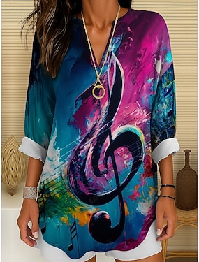 музыкальный фестиваль Жен. Блуза Омбре Графика Геометрический принт Элегантный стиль Винтаж тропический Длинный рукав V-образный вырез Обычные топы Повседневные Праздники С принтом