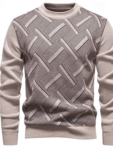 Муж. Вязаная ткань Пуловер Свитер Свитер с узором Fair Isle Рельефный узор Вязать Обычные топы Трикотаж Облегающий крой Геометрический принт Вырез под горло Вязаная одежда Современный
