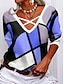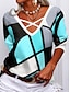 Жен. Футболка Графика Геометрический принт Геометрия Винтаж Стиль Классика С короткими рукавами Вырез под горло Круглый вырез Обычные топы Повседневные С принтом Синий Лето Весна