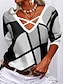 Жен. Блуза Геометрический принт Стиль Современное На каждый день Длинный рукав V-образный вырез Обычные топы Повседневные С отверстиями С принтом Красный Синий Лиловый Зеленый Серый Весна Осень Зима