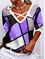 Жен. Футболка Графика Геометрический принт Контрастных цветов Винтаж Стиль Классика С короткими рукавами Вырез под горло Круглый вырез Обычные топы Повседневные С принтом Красный Синий Лиловый Зеленый