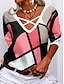 Жен. Футболка Омбре Графика Геометрический принт Винтаж Стиль Классика Длинный рукав V-образный вырез Зубчатая шея Обычные топы Повседневные выходные С принтом Белый Розовый Красный Светло-синий
