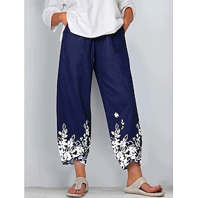 Жен. Чино Отпуск Винтаж Этнический стиль По щиколотку Завышенная Цветочный принт Графика Лист Карман Мягкий На открытом воздухе Дышащий Неэластичная Отпуск Для улицы Повседневные