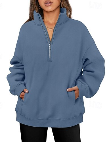 Жен. Pullover Толстовки Толстовки с застежкой-молнией Полотняное плетение Спорт Мода На каждый день Длинный рукав Вырез под горло Обычные топы Для улицы На каждый день На выход
