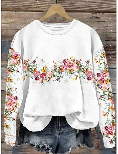 Жен. Pullover Цветочный принт Графика Теплый Классика На каждый день Длинный рукав Вырез под горло Обычные топы Дом Для улицы На каждый день С принтом Белый Весна Осень Зима