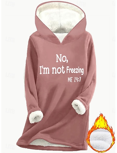 Жен. Толстовка с капюшоном и пуловером Графика Буквы Теплый На каждый день Шерпа Флис Длинный рукав Капюшон Длинные топы Для улицы На каждый день Повседневные С принтом Темно-розовый Синий Серый