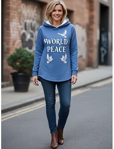 Жен. Толстовка с капюшоном и пуловером Графика Буквы Теплый На каждый день Шерпа Флис Длинный рукав Капюшон Длинные топы Для улицы На каждый день Повседневные С принтом Темно-розовый Синий Серый