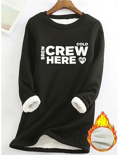 Жен. Пижама-свитшот с флисовой подкладкой Пуловер Толстовка Pullover Толстовки Буквы Теплый Уличный стиль На каждый день Длинный рукав Вырез под горло Длинные топы Дом На каждый день Повседневные