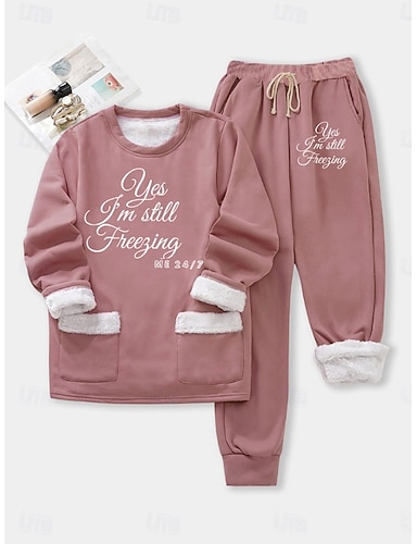 Жен. Теплый Повседневные Комплекты из двух предметов Спортивный костюм Комплекты брюк Длинный рукав Круглый вырез Графика Буквы Кулиска С принтом Повседневные Черный Розовый Синий Осень