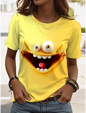 Жен. Футболка Графика Буквы Винтаж Стиль Классика С короткими рукавами Вырез под горло Круглый вырез Обычные топы Повседневные выходные С принтом Черный Белый Желтый Розовый Красный Лето Весна
