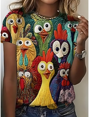 Жен. Футболка Омбре Графика Петух Винтаж Стиль Классика С короткими рукавами Вырез под горло Обычные топы Повседневные выходные С принтом Розовый Синий Зеленый Хаки Лето Весна
