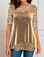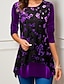 Жен. Блуза Топы с пайетками Цветочный принт Графика Винтаж Стиль Длинный рукав Вырез под горло Обычные топы Повседневные Праздники На выход Пайетки С принтом Желтый Красный Лиловый Осень Зима