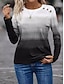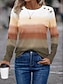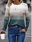 Футболка для женщин с длинным рукавом классическая длинная туника омбре графика текстура винтажная стильная современная круглый вырез повседневные топы синий пурпурный оранжевый зеленый осень