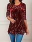 Новогодняя тематика Жен. Футболка Графика Геометрический принт Винтаж Стиль На каждый день Длинный рукав Вырез под горло Обычные топы выходные С принтом Розовый Коричневый Зеленый Зима