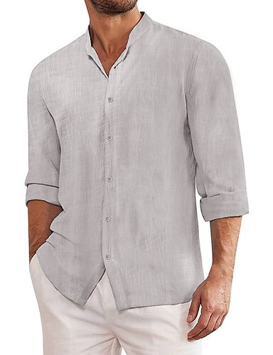 Муж. Рубашка Льняная рубашка Летняя рубашка Кнопка рубашка Рубашки навыпуск Полотняное плетение Повседневные Уличная одежда Черный Белый Синий Серый Длинный рукав Воротник-стойка Весна лето Одежда